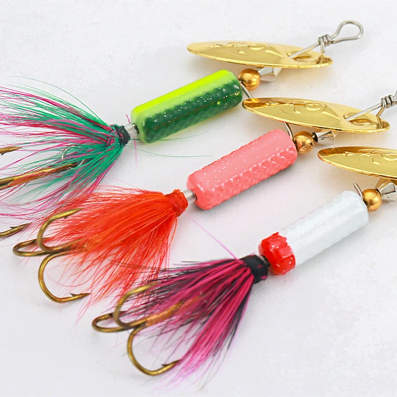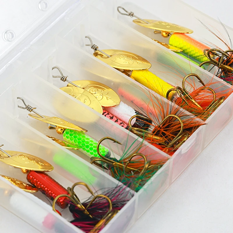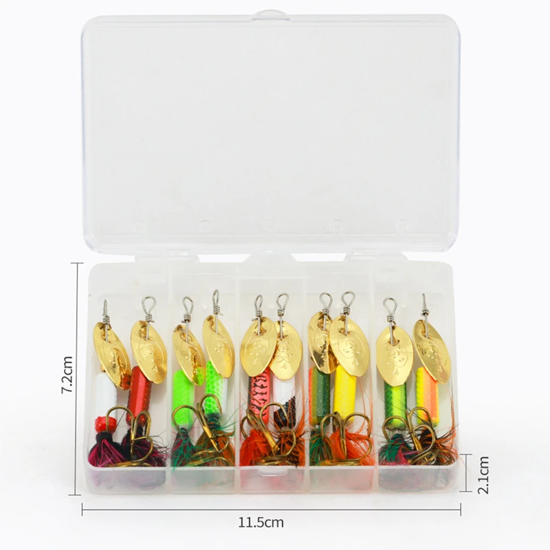 10/5PCS Metal Spinner Bait Spoon Hard Fishing Lures With Treble Hooks