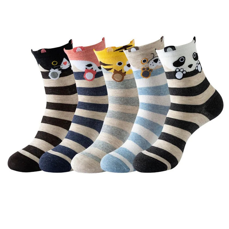 5 Pairs Fashion Pet cat dog Colorful Kawaii Cute Cartoon Cotton Women Socks