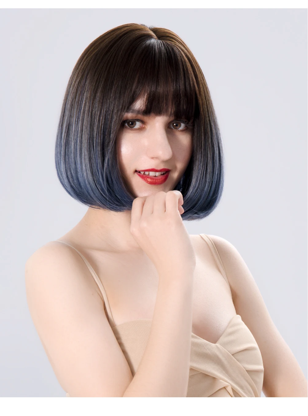 Bob Wig Straight Short Black To Blue Ombre Daily Synthetic Wigs For Women