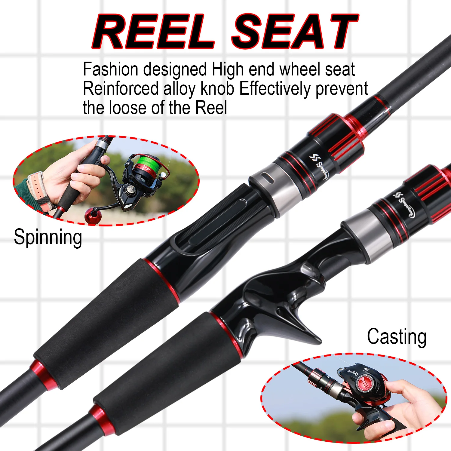 5.ABS Reel Seat: high strength roller seat with ergonomic design. ABS reel seats are durable and secure in place under the pressure of powerful fish.