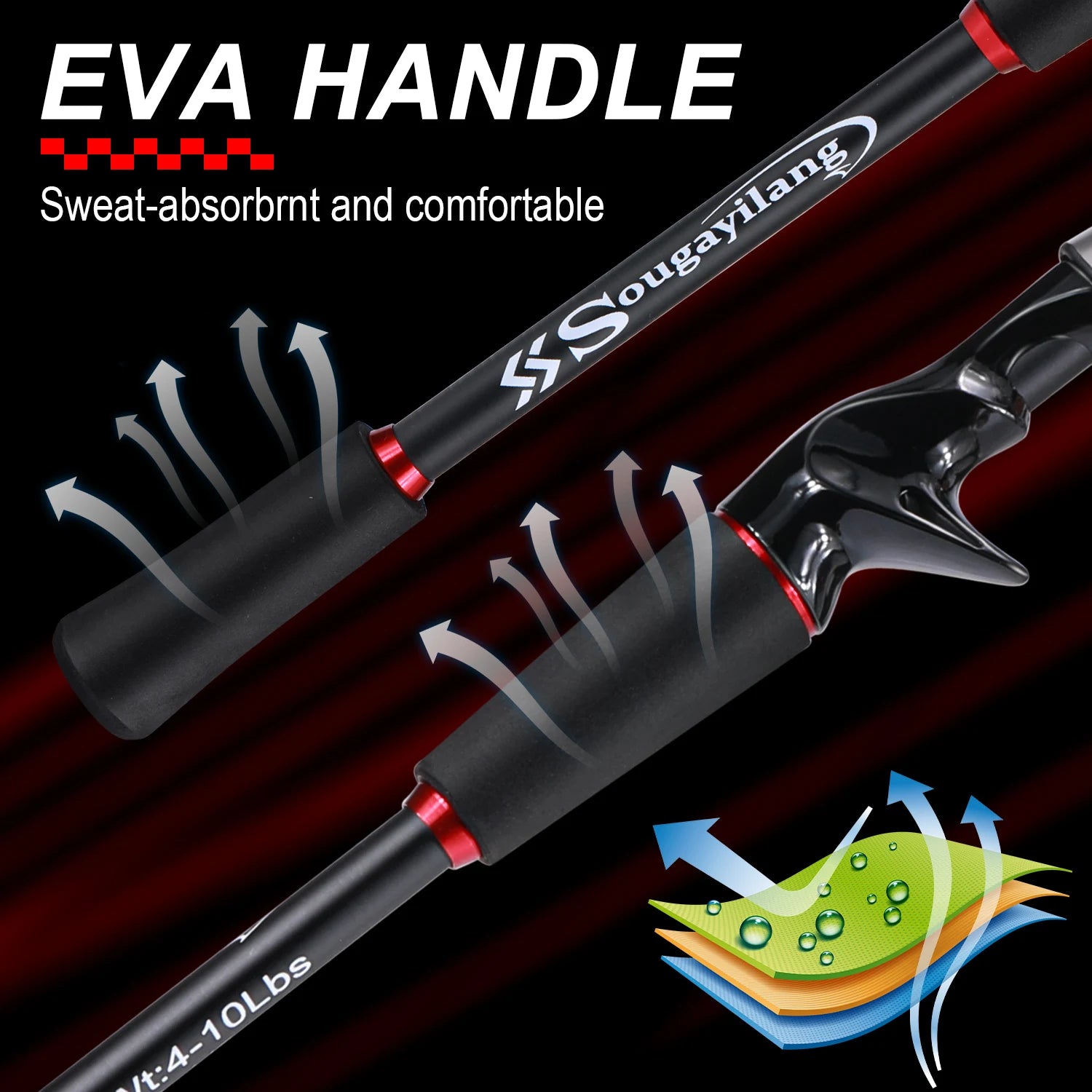 4.Comfortable and non-slip EVA handle to meet ergonomic design,Sweat-absorbrnt and comfortable and control the rod better.