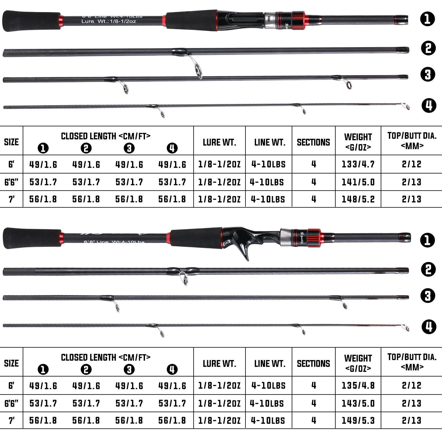 Casting/Spinning Fishing Rod 1.8-2.1m 4 Section UltraLight Carbon Fiber