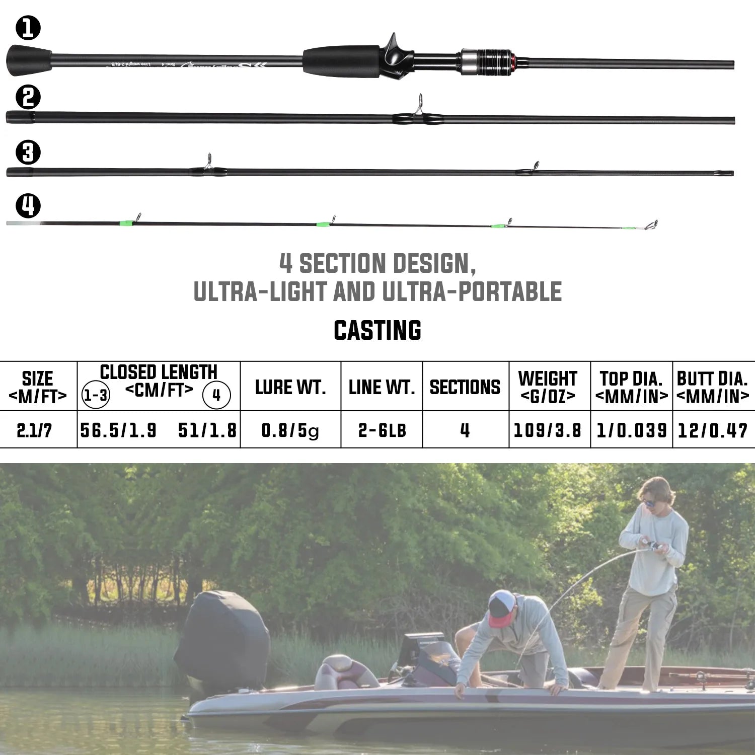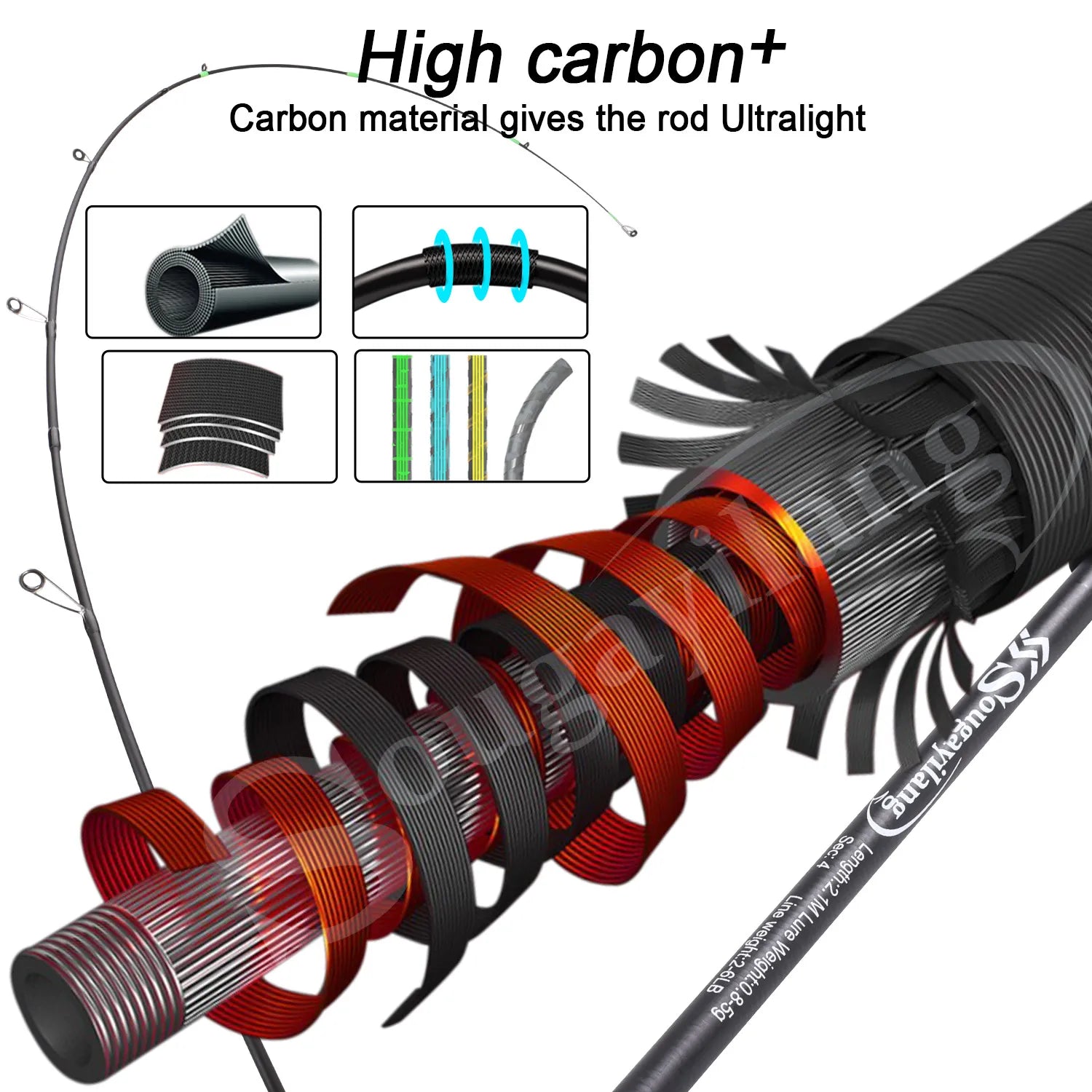Sougayilang Casting Spinning Fishing Rod 1.8-2.1m UltraLight Carbon Fiber Rod 3/4 Section with EVA Handle Baitcasting Fishing Rod