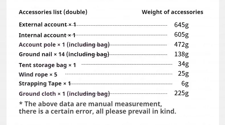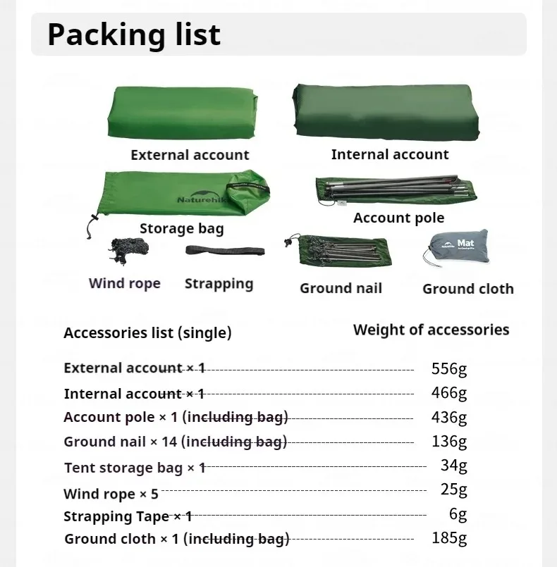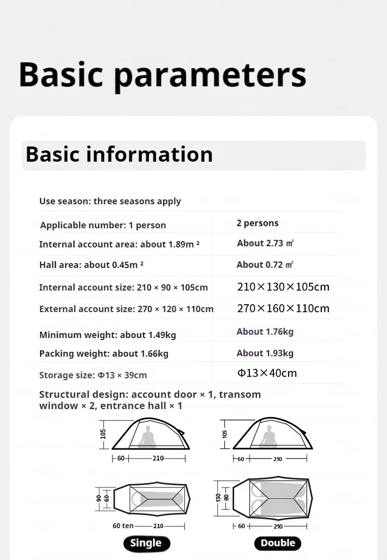 Packing Weight: About 1.85kg (1P) / 2.15kg(2P)
