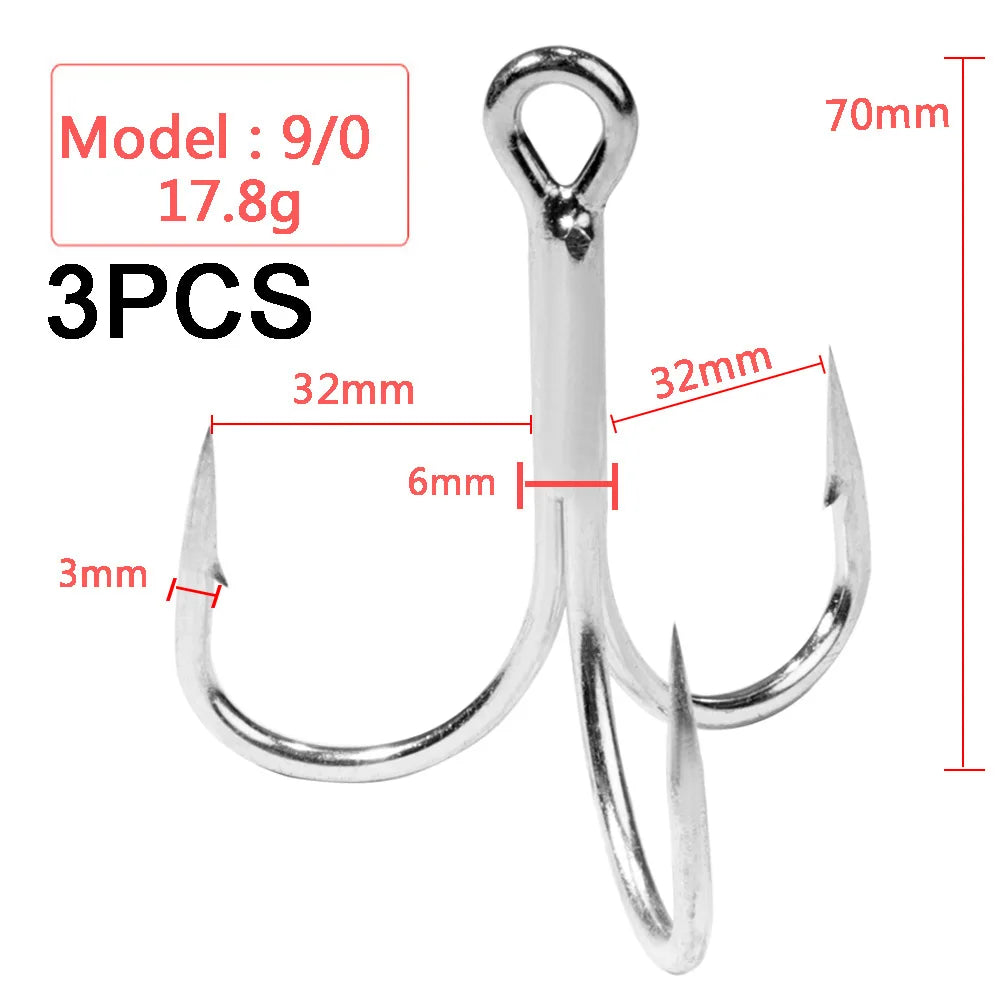 Super Big Fishing Hooks 1/0#-10/0# Huge High Carbon Steel Treble Overturned Hooks Sea Lake Fishing Tackle Round Bend Treble For Soft Lure Bass Carp Large Fish