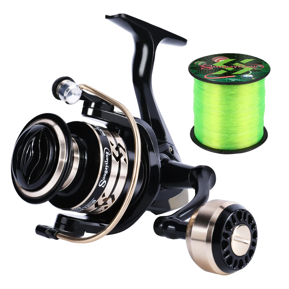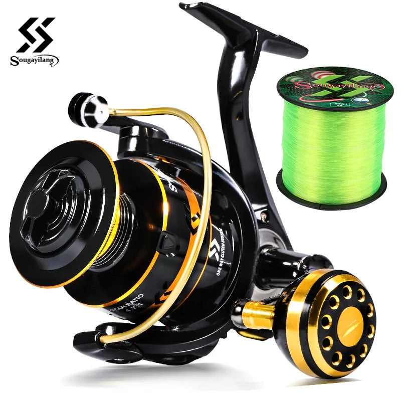 Sougayilang 12+1BB Spinning Fishing Reel High Strength Cast Alloy Drive Gear Aluminum Spool Saltwater Freshwater Max Drag 16kg Free Gift 500m Fishing Line
